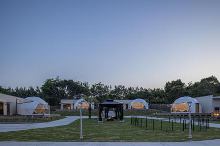 約3㎞も続く白砂の脇本海水浴場に隣接するカフェ&ビーチグランピング「napooKaLa beach resort」